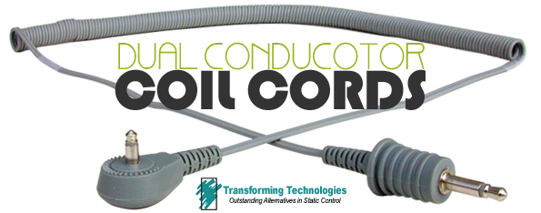 Over the past year, Transforming Technologies has worked diligently to create a line of dual conductor grounding products that is competitive in design and value to 3M’s dual line. Recently our CC3000 Series Dual Conductor Coil Cords were put through an independent test by Affinity Static Control Consulting. Below is an excerpt from their test results.
